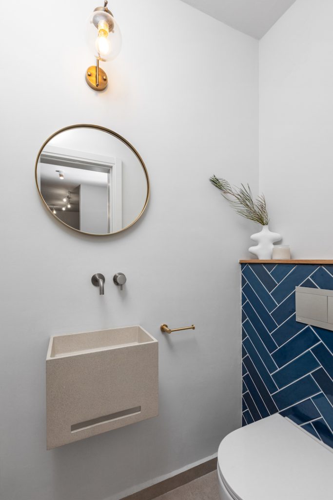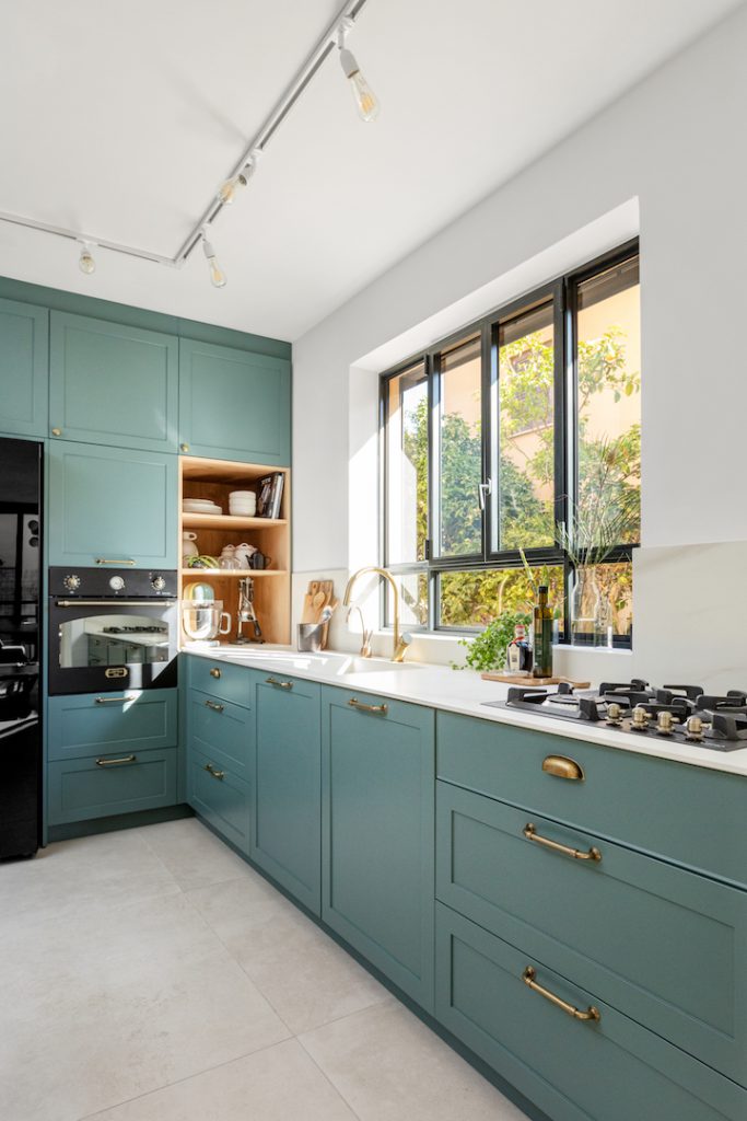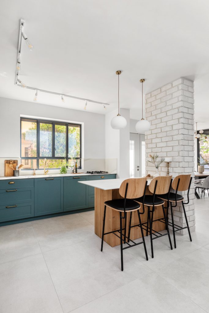 המטבח המיוחד הוא מוקד עניין מרכזי בבית- הצבע המיוחד שלו שנע בין ירוק לכחול מושך את תשומת הלב של כל מי שנכנס לבית. שני הקירות בכניסה למטבח קוצרו משמעותית, דבר שגורם למטבח להיות מאוורר יותר ומחובר בצורה טובה יותר לחלל המגורים.